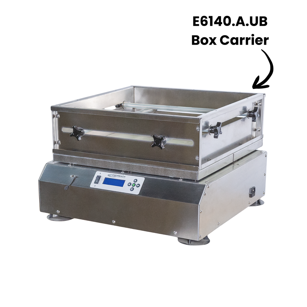 The E6140.00 controller has a digital tachometer along with a digital countdown timer. The desired rate of rotation is adjusted from the speed control pad on the front panel and speed is monitored via tachometer. The digital countdown timer can be selected for timed operation or the unit can be used for constant operation. Data export is available by USB export to CSV file. The E6140.00 is rated for continuous operation. The E6140.00 has many options and accessories available, all top platforms (E6140.A.TP), Perforated platform for flask holders (E6140.A.P), and box carrier (E6140.A.UB) are sold separately, please see specifications for more information.